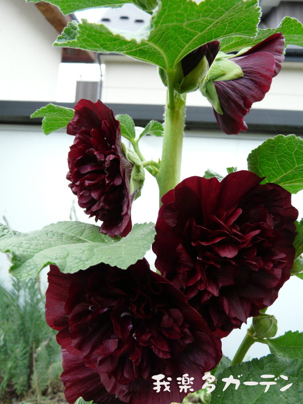 サーモンのホリホックと菜園のとうもろこしが倒れました( p_q)