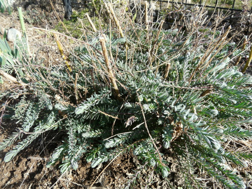 北風の寒風がきつい場所だったので、葉っぱは枯れ枯れになってしまいました。赤い新芽ぽいのがあるので『伸びてこーい』とまじないをかけてます。
