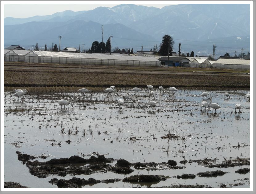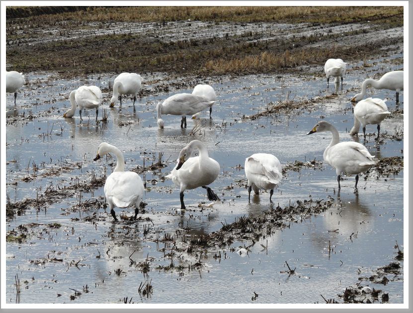 近所の田んぼに白鳥たちが遊びに来てました。