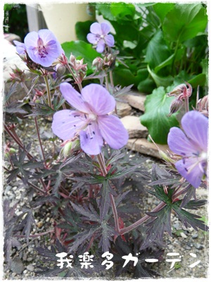 銅葉ゲラニウムのホーカスポーカスとアケボノの白