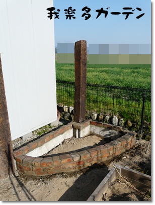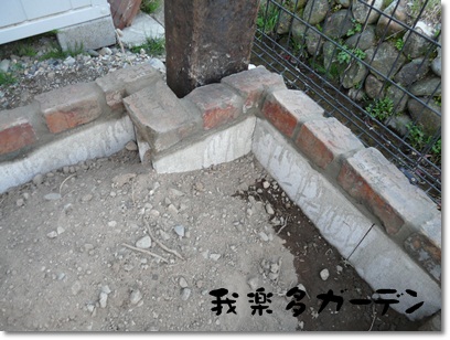 フェンス用の枕木の支柱が腐った場合に備えて隙間を空けてあります。