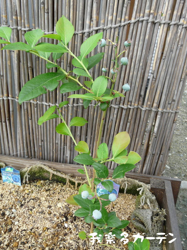 春に植えたブルーベリーはあまつぶ星にだけ実がついてます。