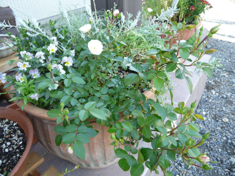 アーチの反対側には先日紹介したカザグルマと思われるクレマチス。