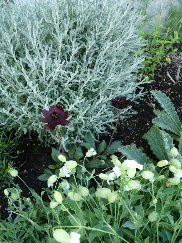 新入りチョコレートコスモスと電柱花壇
