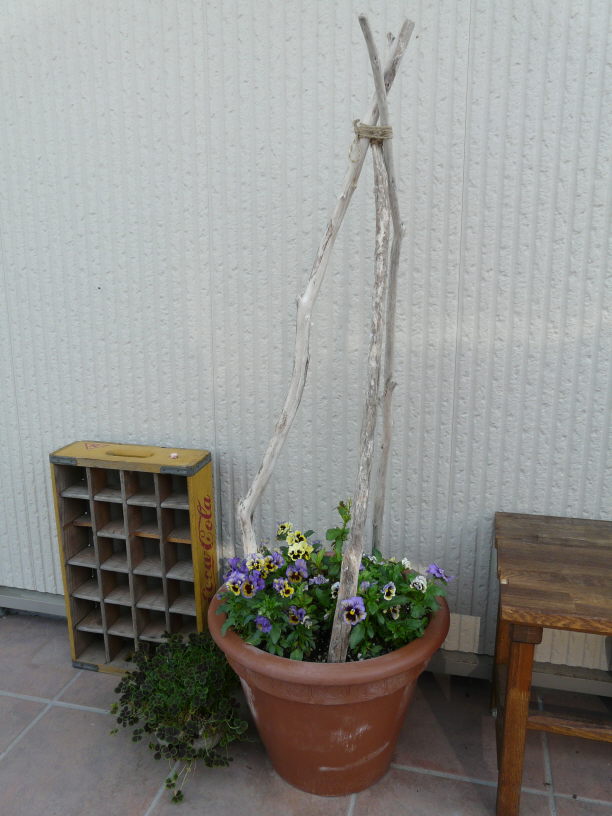 3本挿しててっぺんを麻紐で結んだだけのお手軽技です。