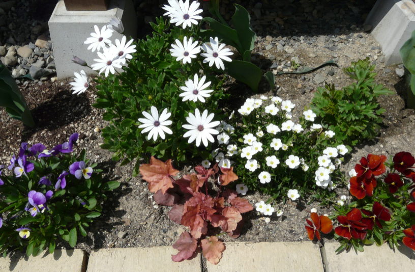 冬の1月頃、せっせと作った、2時頃から日陰になる花壇に植えてます。