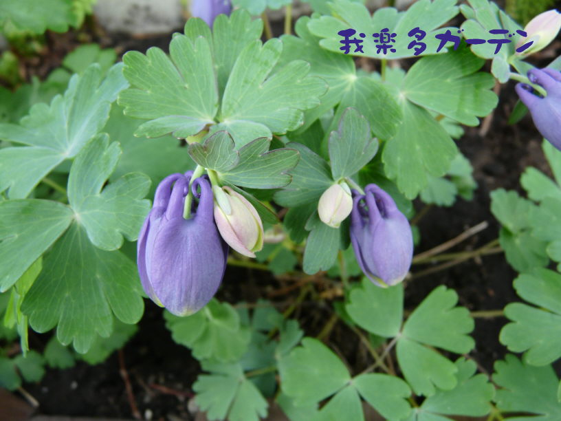 それとオダマキの蕾の色が染まり可愛いぼんぼりになりました。