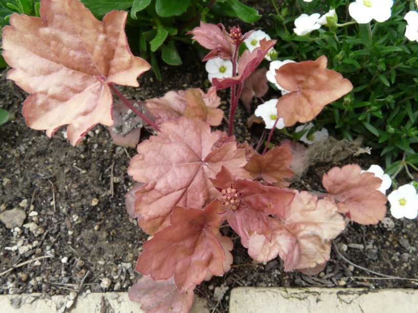 秋に購入して春に植えた ヒューケラ ピーチパイ も一緒に。