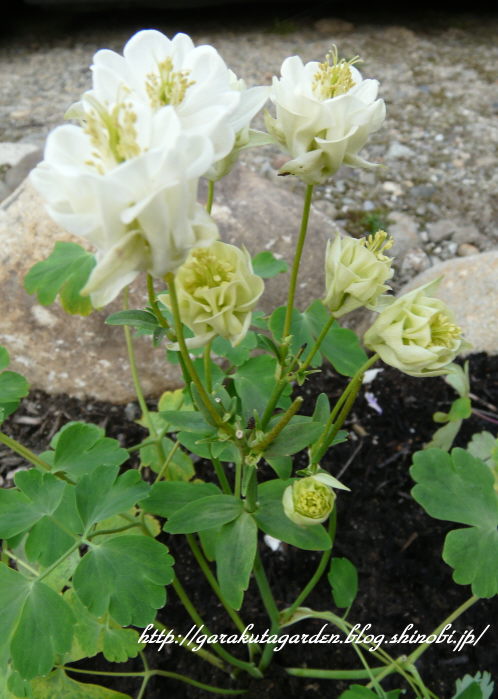 八重咲きのオダマキ「ウィンキーダブル」のホワイトです。