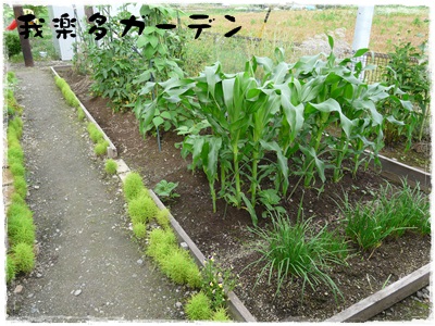 とうもろこしの左横は枝豆、そしてモロッコインゲンです。